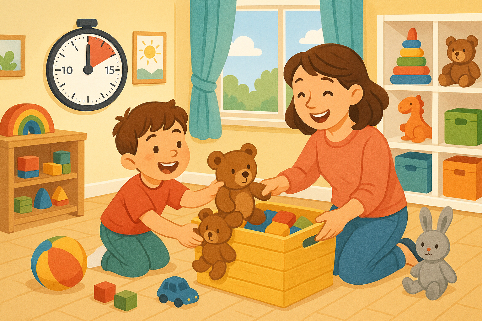 정리 전 타이머를 맞추는 것은 ‘언제 끝날지 모르는’ 막연한 정리가 아니라, ‘딱 10분만’이라는 명확한 목표를 주기 때문에 시작이 훨씬 쉽습니다. 아이에게도 “우리 10분 동안만 힘내자!”라고 말하면, 짧은 시간이라 집중력이 높아지고, 정리가 끝난 후 성취감도 함께 얻을 수 있습니다.